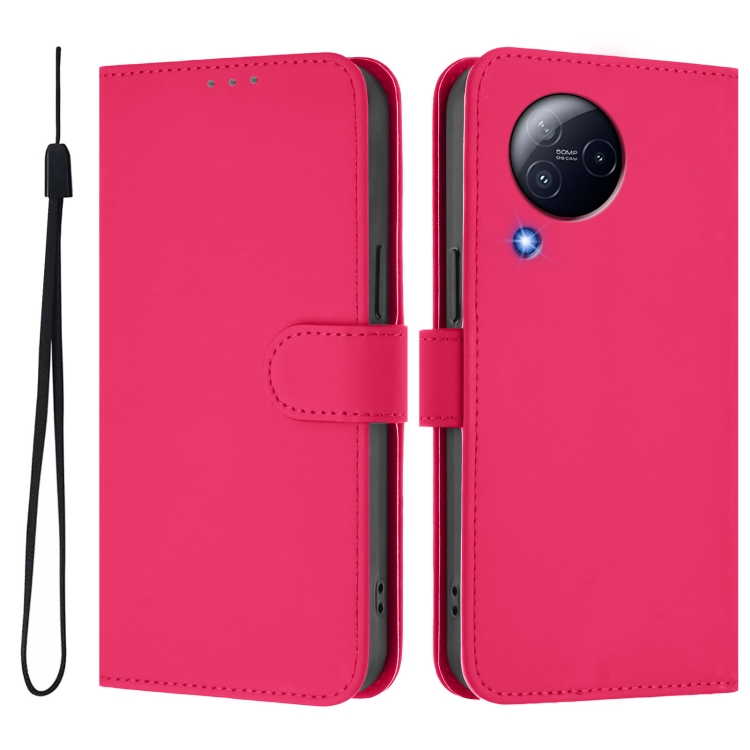 Funda de Piel Sintética con Cordón para Xiaomi Civi 3 5G (Rosa y Rojo)