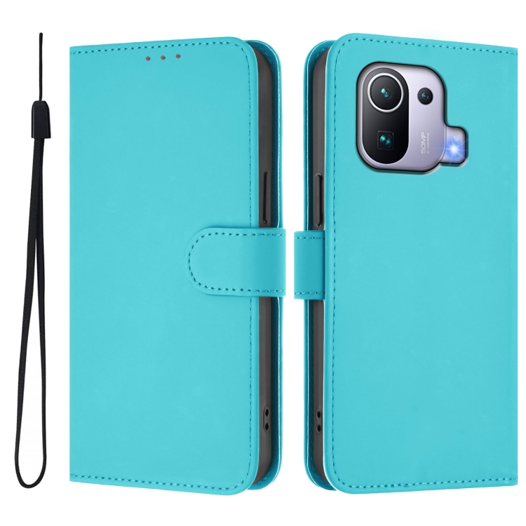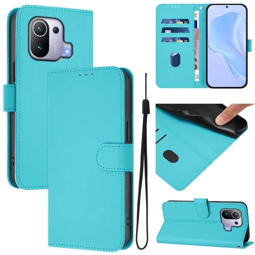 Funda de Piel Sintética con Cordón para Xiaomi Mi 11 Pro (Azul Lago)