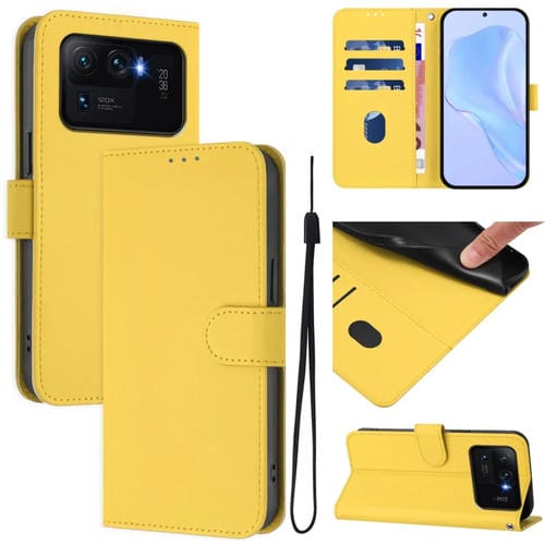 Funda de Piel Sintética con Cordón para Xiaomi Mi 11 Ultra Skin Feel de Color Liso (Amarillo Limón)