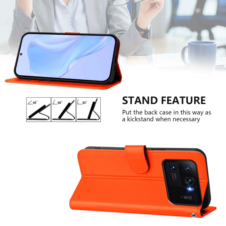 Funda de Piel Sintética con Cordón para Xiaomi Mi 11 Ultra Skin Feel de Color Liso (Naranja)