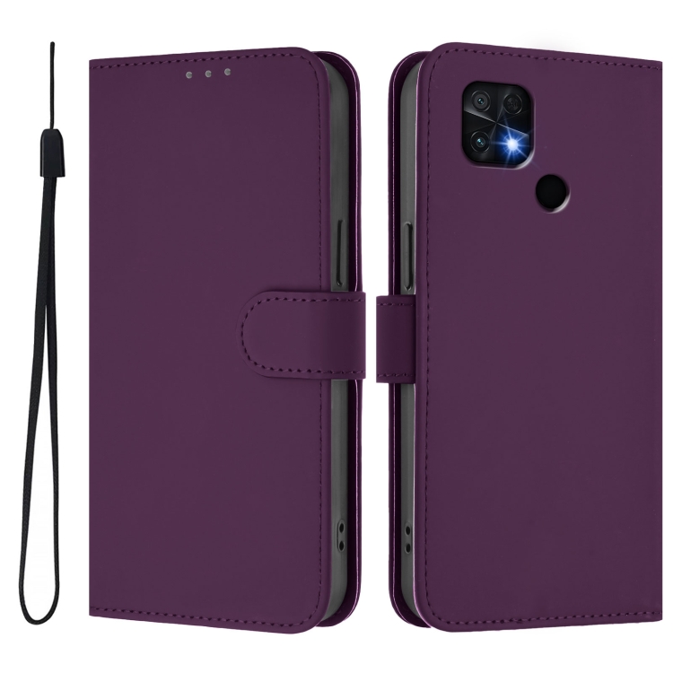 Funda de Piel Sintética con Cordón para Xiaomi Poco C40, Color Liso, con Tacto de Piel (Violeta)