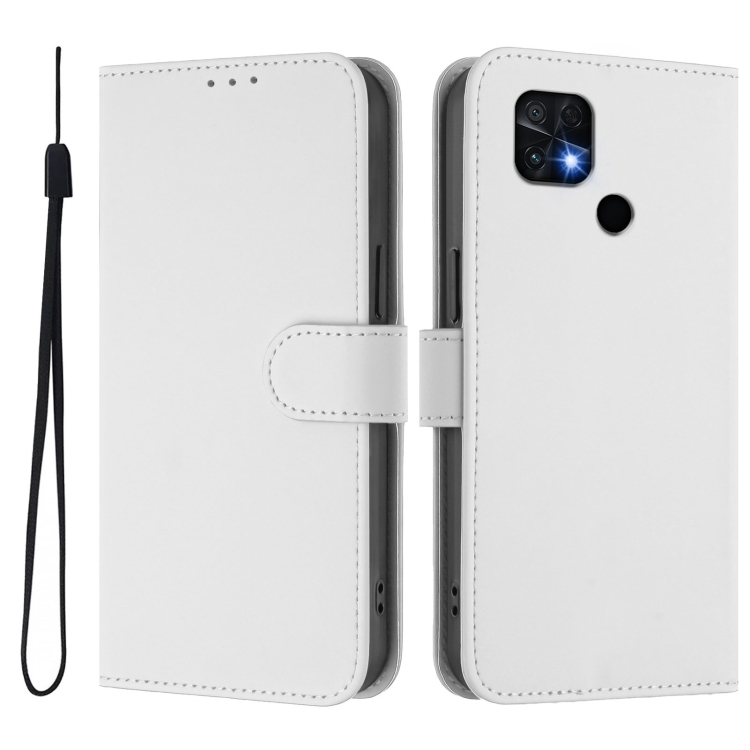 Funda de Piel Sintética con Cordón para Xiaomi Poco C40 (Color Sólido) (Blanco)