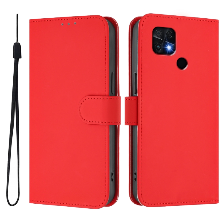 Funda de Piel Sintética con Cordón para Xiaomi Poco C40 (Color Sólido) (Rojo)