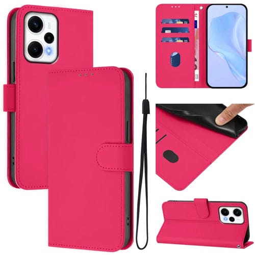 Funda de Piel Sintética con Cordón para Xiaomi Poco F5 (Rosa y Rojo)