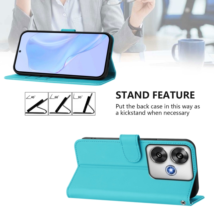 Funda de Piel Sintética con Cordón para Xiaomi Poco F6 5G (Azul Lago)