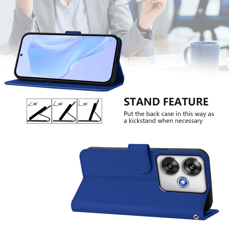 Funda de Piel Sintética con Cordón para Xiaomi Poco F6 5G (Azul Oscuro)