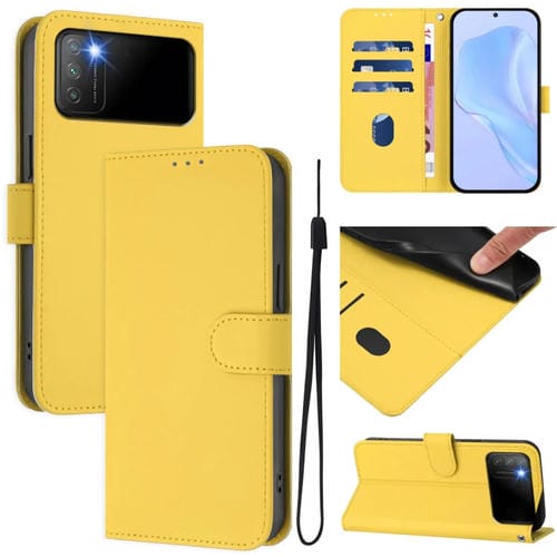 Funda de Piel Sintética con Cordón para Xiaomi Poco M3 (Amarillo Limón)