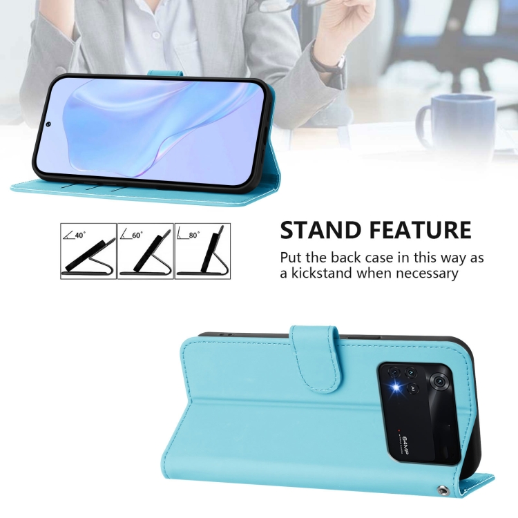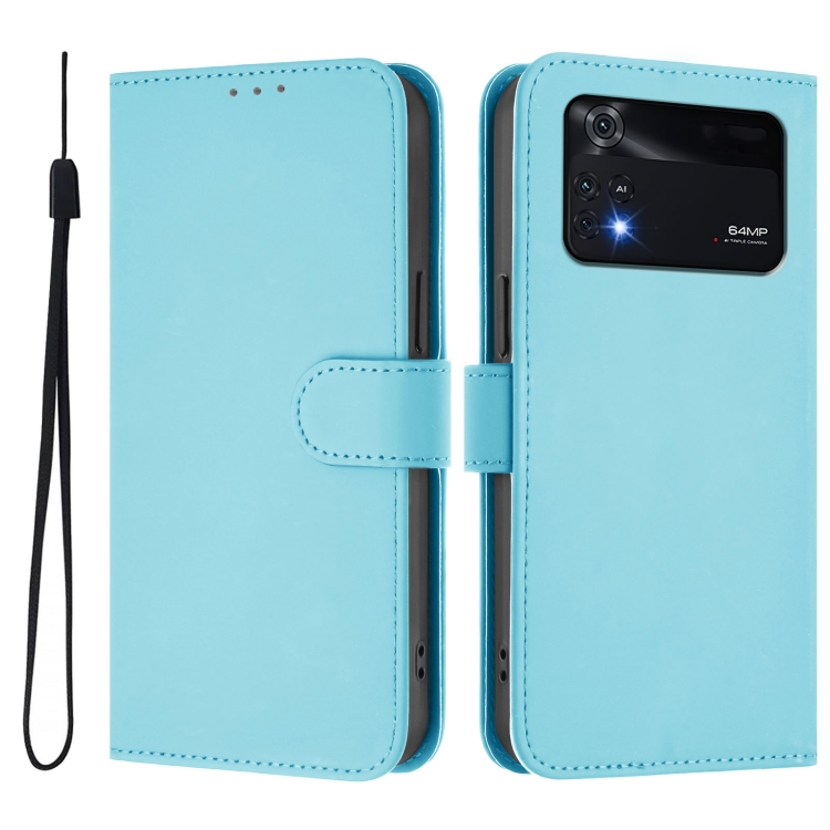 Funda de Piel Sintética con Cordón para Xiaomi Poco M4 Pro 4G (Azul Cielo)