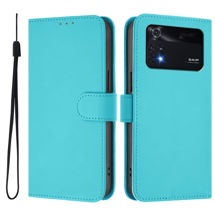 Funda de Piel Sintética con Cordón para Xiaomi Poco M4 Pro 4G (Azul Lago)