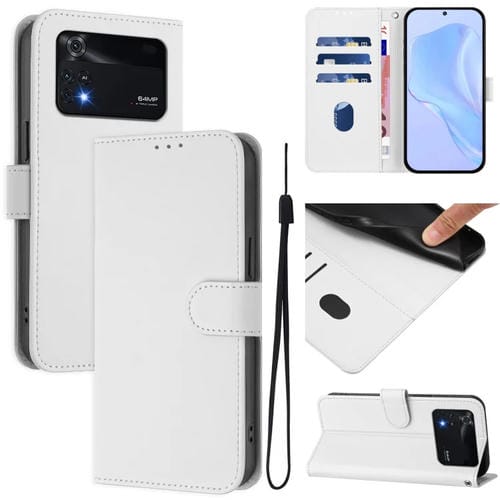 Funda de Piel Sintética con Cordón para Xiaomi Poco M4 Pro 4G (Color Blanco)