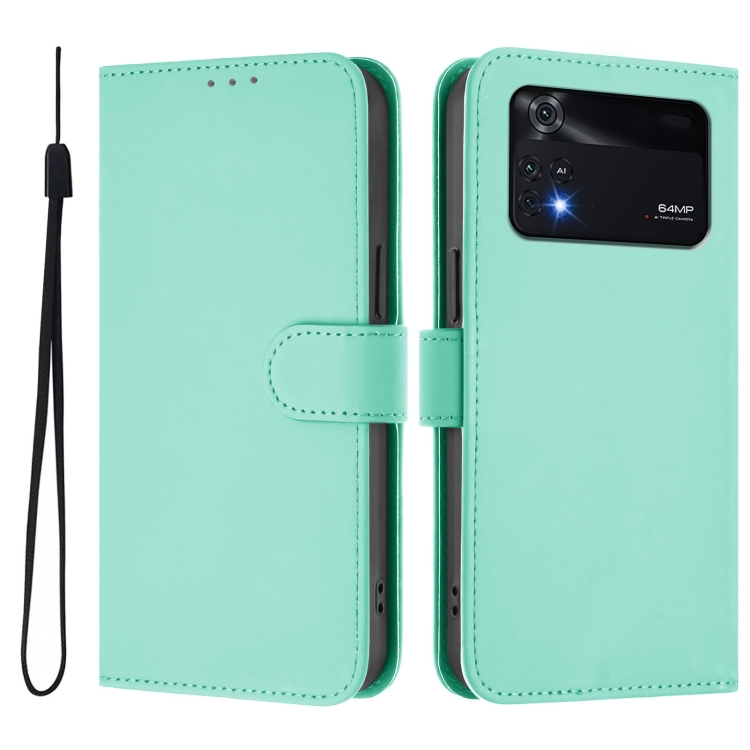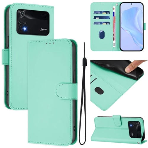 Funda de Piel Sintética con Cordón para Xiaomi Poco M4 Pro 4G (Verde Menta)