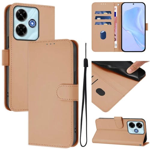 Funda de Piel Sintética con Cordón para Xiaomi Poco M6 4G (Color Piel)
