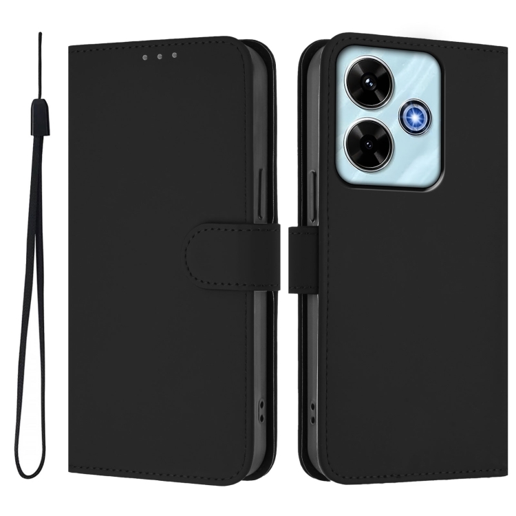 Funda de Piel Sintética con Cordón para Xiaomi Poco M6 4G (Color Sólido) (Negro)