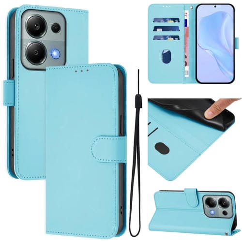 Funda de Piel Sintética con Cordón para Xiaomi Poco M6 Pro 4G (Azul Cielo)