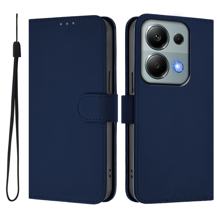 Funda de Piel Sintética con Cordón para Xiaomi Poco M6 Pro 4G (Azul Marino)