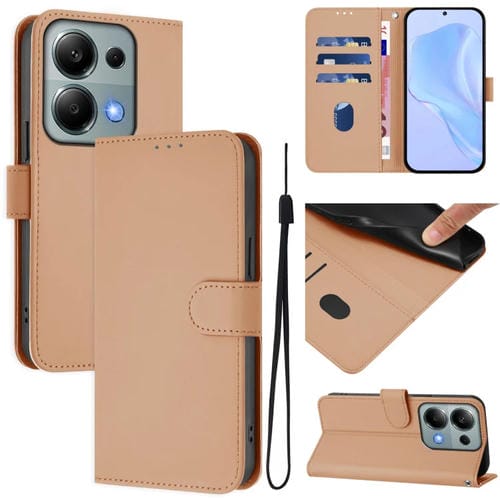Funda de Piel Sintética con Cordón para Xiaomi Poco M6 Pro 4G (Color Piel)