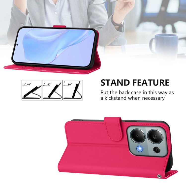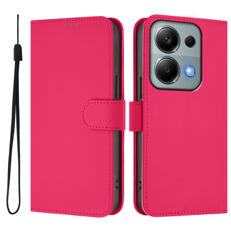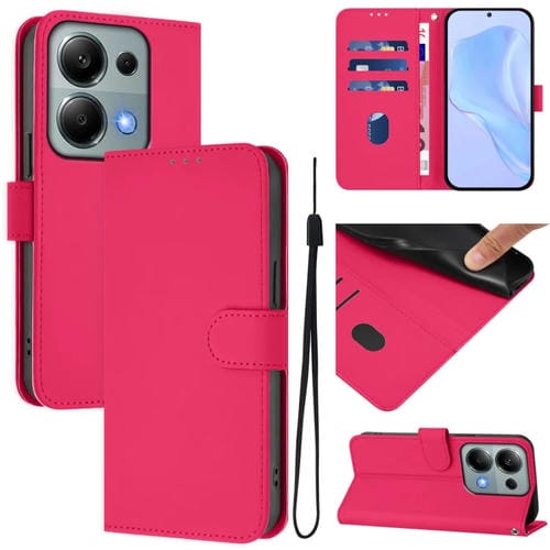 Funda de Piel Sintética con Cordón para Xiaomi Poco M6 Pro 4G (Rosa y Rojo)