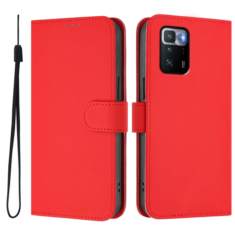 Funda de Piel Sintética con Cordón para Xiaomi Poco X3 Gt, Color Liso, con Tacto Suave (Rojo)
