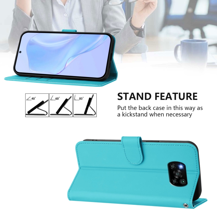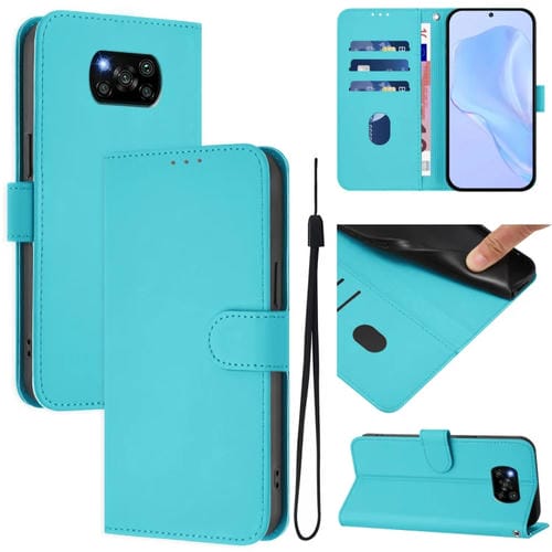 Funda de Piel Sintética con Cordón para Xiaomi Poco X3 Pro / X3 Nfc / X3 (Azul Lago)