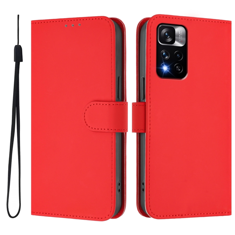 Funda de Piel Sintética con Cordón para Xiaomi Poco X4 Nfc 5G (Color Sólido) (Rojo)