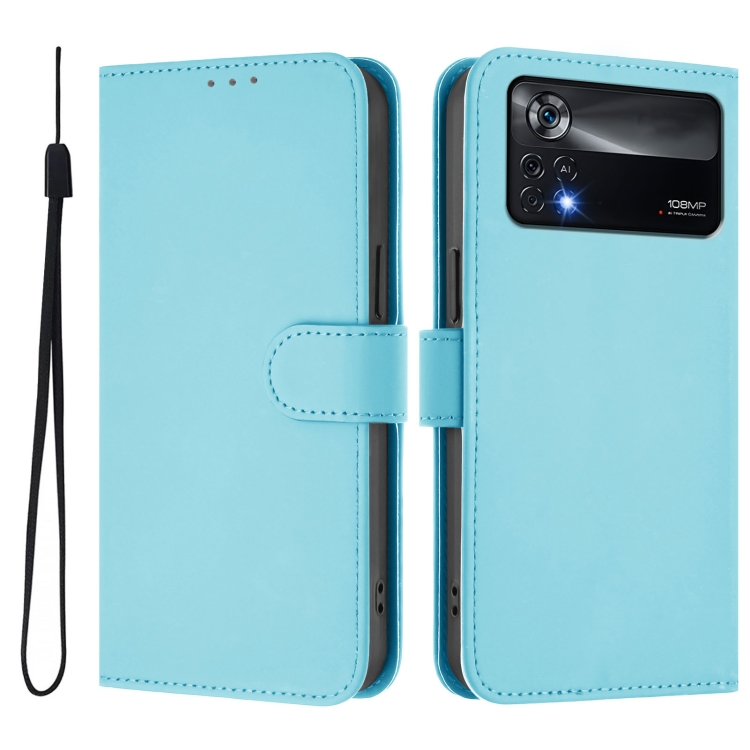 Funda de Piel Sintética con Cordón para Xiaomi Poco X4 Pro 5G (Azul Cielo)