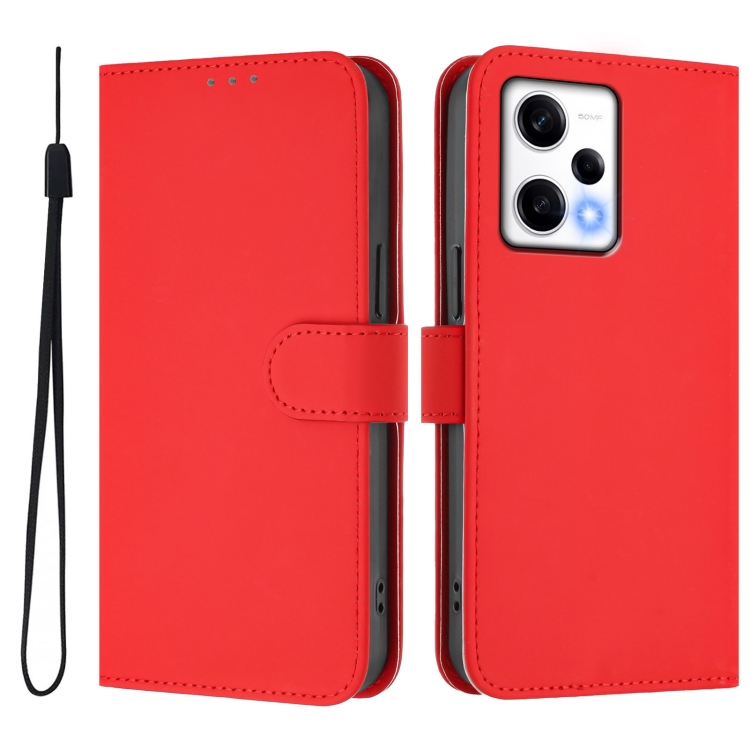 Funda de Piel Sintética con Cordón para Xiaomi Poco X5 Pro (Color Sólido) (Rojo)