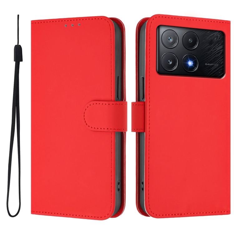 Funda de Piel Sintética con Cordón para Xiaomi Poco X6 Pro (Color Sólido) (Rojo)