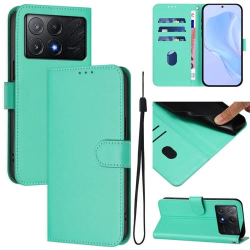 Funda de Piel Sintética con Cordón para Xiaomi Poco X6 Pro (Verde)