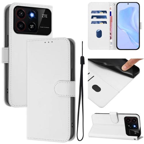 Funda de Piel Sintética con Cordón para ZTE Blade A35/A55 (Blanco)