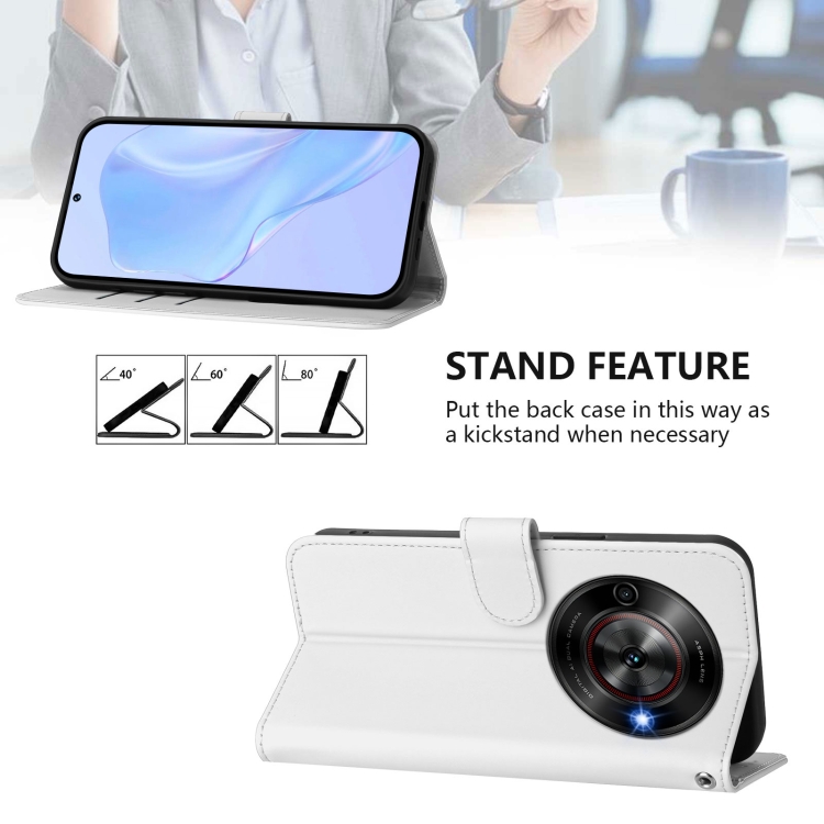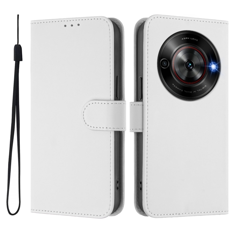 Funda de Piel Sintética con Cordón para ZTE Blade A75 5G (Blanco)