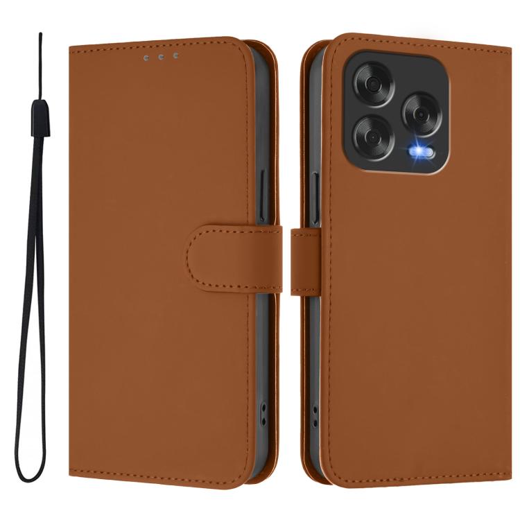 Funda de Piel Sintética para ZTE Blade V70 con Diseño Liso y Cordón (Marrón)