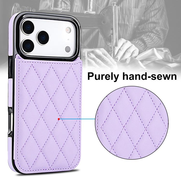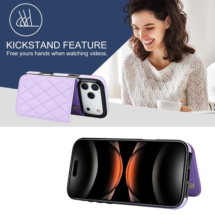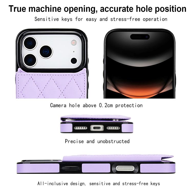Funda de piel sintética con doble hebilla y diseño rómbico para iPhone 17 Pro (morada)