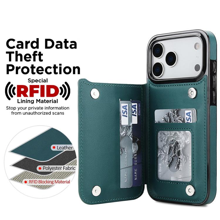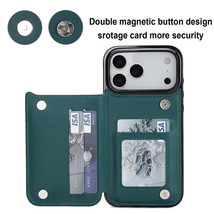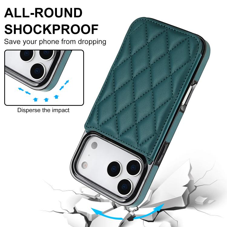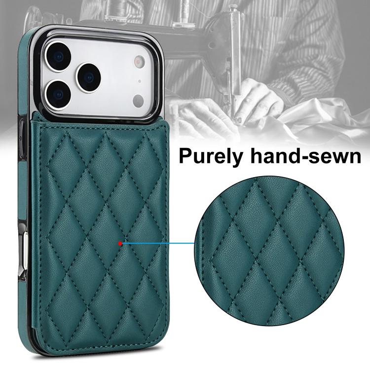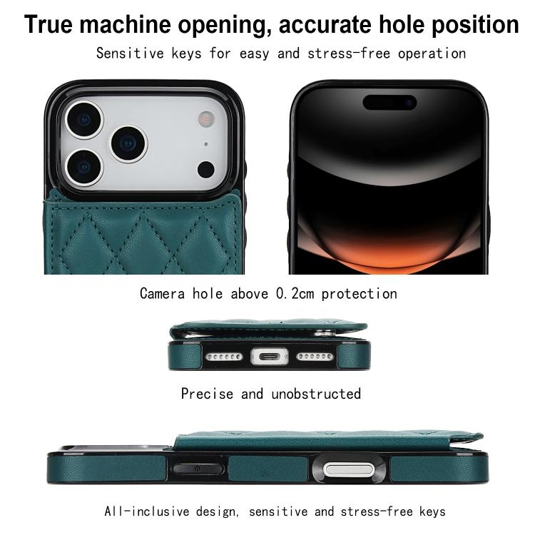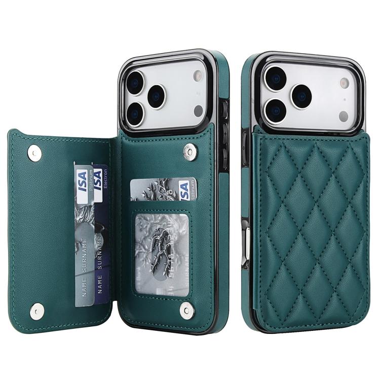 Funda de piel sintética con doble hebilla y diseño rómbico para iPhone 17 Pro (verde)