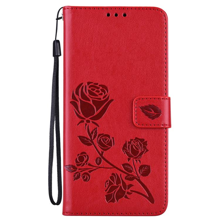 Funda de piel sintética con tapa y relieve rosa para iPhone 17 Pro (Roja)