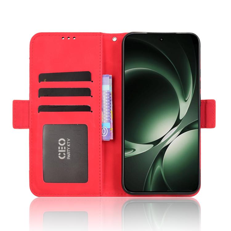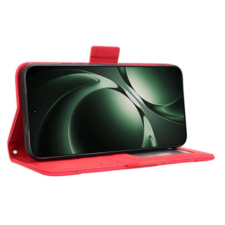 Funda de piel sintética con textura de becerro y ranuras para tarjetas para Redmi K80 Ultra (roja)