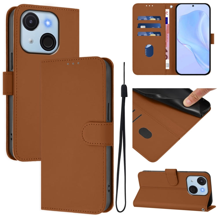 Funda Piel Sintética con Cordón para Teléfono Itel A50C (Marrón)