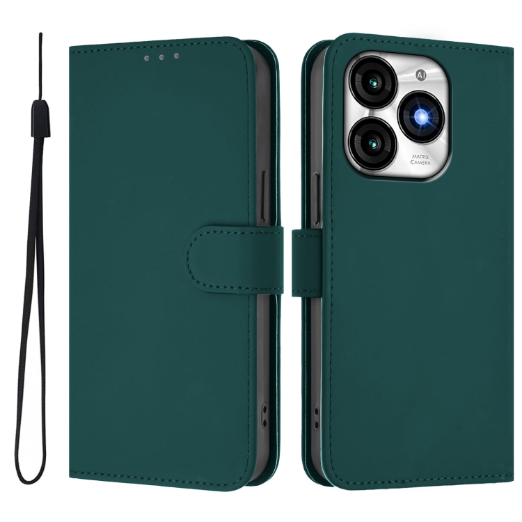 Funda Piel Sintética con Cordón para Teléfono Itel A70 (Verde Oscuro)