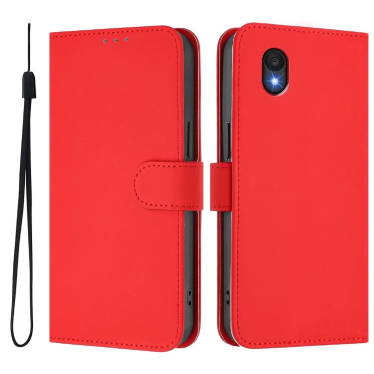 Funda de Piel Sintética para Teléfono TCL 201 con Cordón (Rojo)