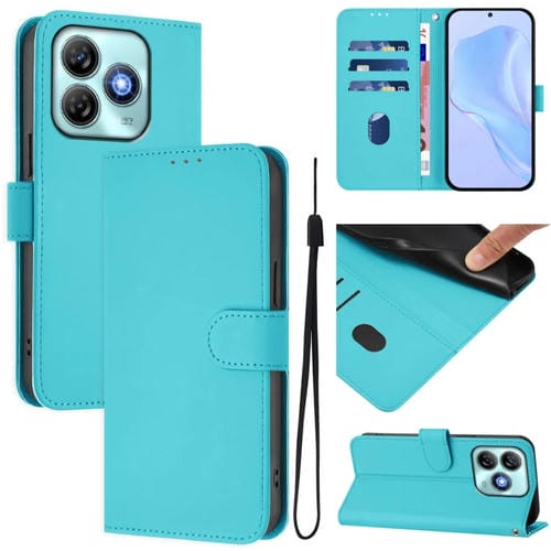 Funda de Piel Sintética con Cordón para ZTE Blade A75 4G (Azul Lago)