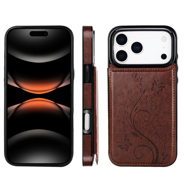 Funda de PU con doble hebilla y estampado de mariposa para iPhone 17 Pro (marrón)