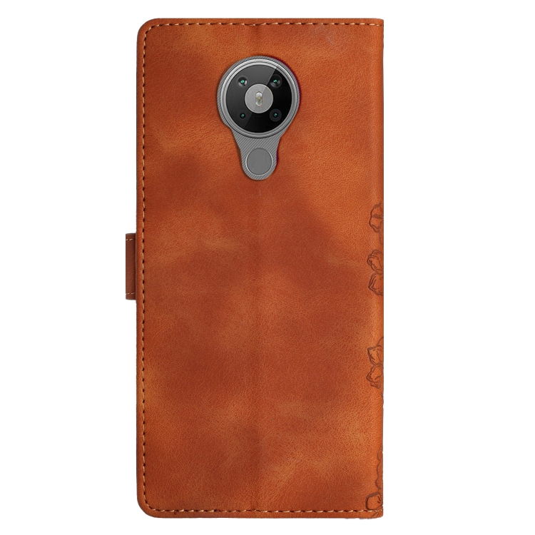Funda de PU con Relieve de Mariposa y Flor de Cerezo para Nokia 5.4 (Marrón)