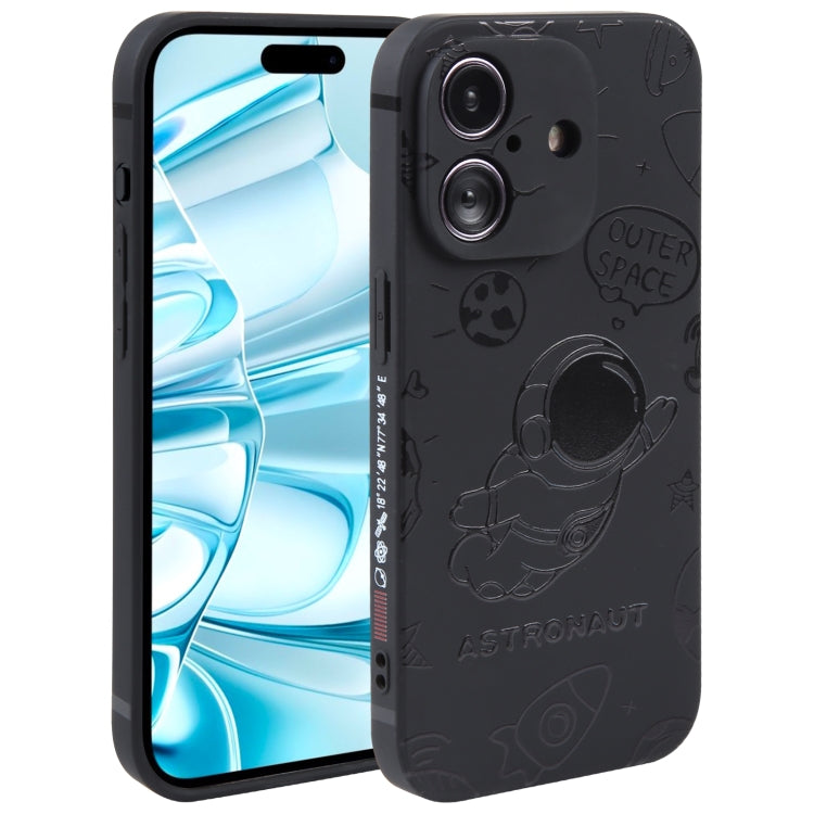 Funda de Silicona con Borde Recto para iPhone 16 (Astronauta Volador, Negro)