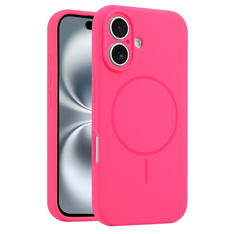 Funda de Silicona Líquida con Orificios Finos para iPhone 16 Magsafe (Rosa y Rojo)