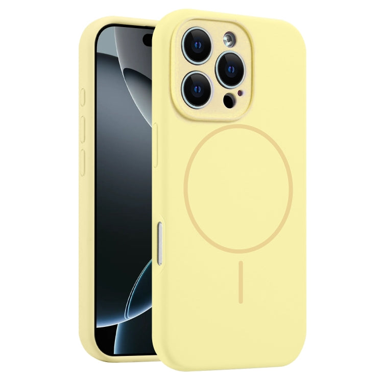 Funda de Silicona Líquida para iPhone 16 Pro Magsafe con Orificios Finos (Amarilla)