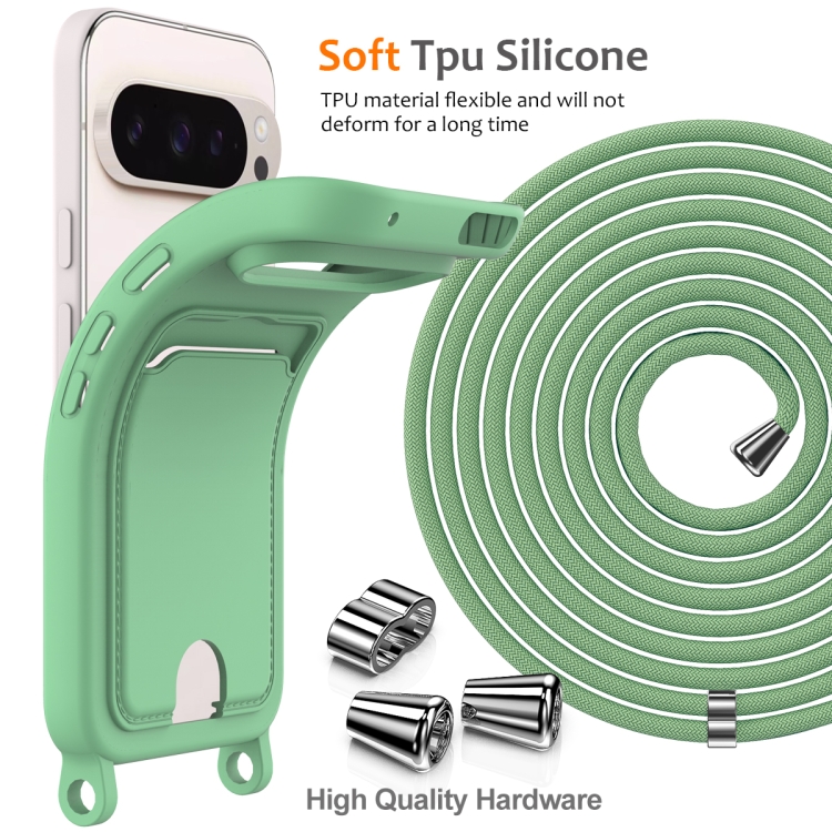 Funda Silicona Líquida Google Pixel 9 Pro XL con Cordón y Bolsa para Tarjetas (Verde)