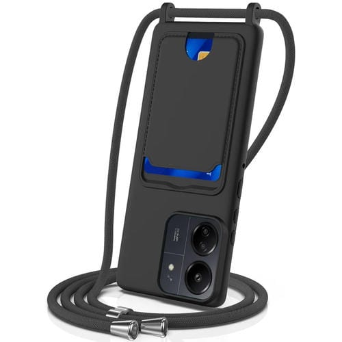 Funda de Silicona Líquida de Color Sólido con Cordón para Redmi 13C 4G/5G/13R 5G con Bolsa para Tarjetas Integrada (Negro)