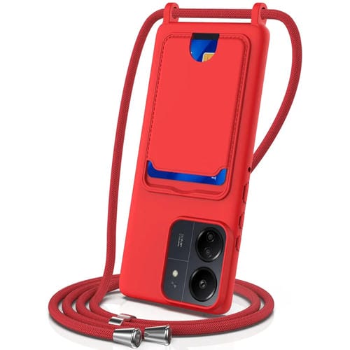 Funda de Silicona Líquida de Color Sólido con Cordón para Redmi 13C 4G / 5G / 13R 5G con Bolsa para Tarjetas Integrada (Rojo)