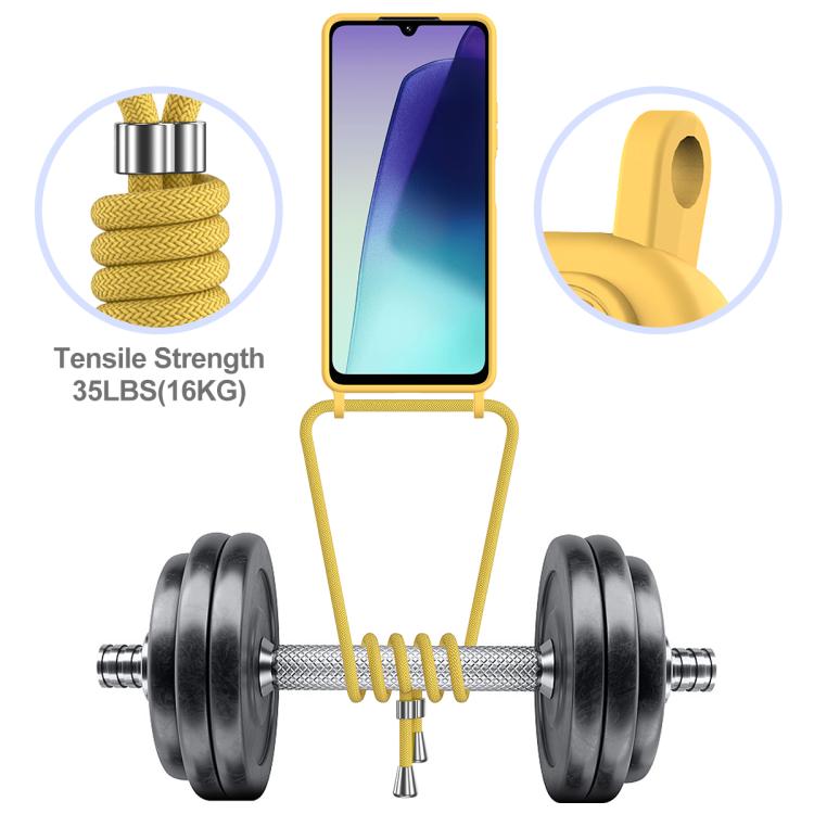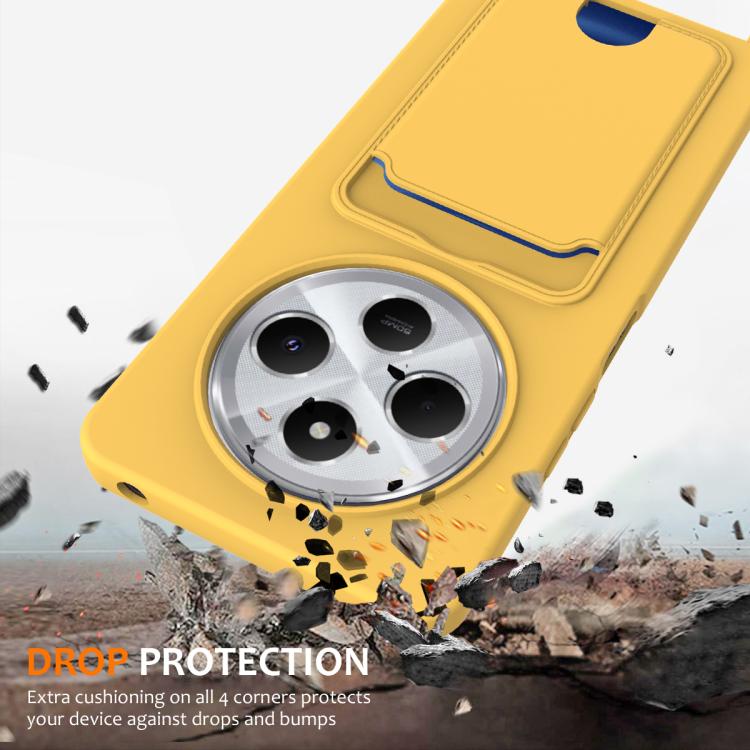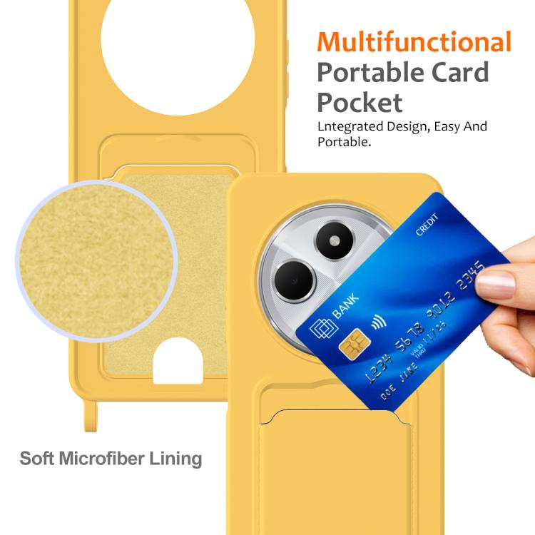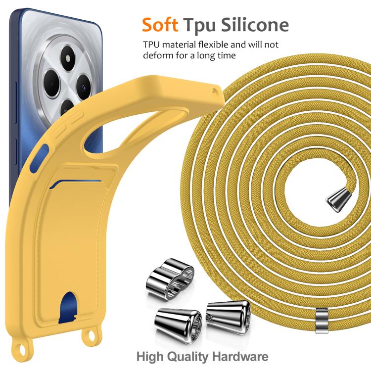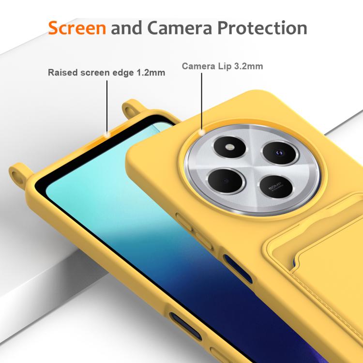 Funda de silicona líquida de color sólido con cordón para Redmi 14C 4G / 14R 5G / A4 5G (con tarjetero integrado) (amarilla)