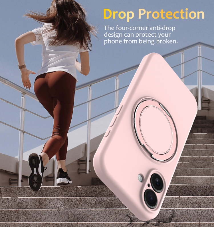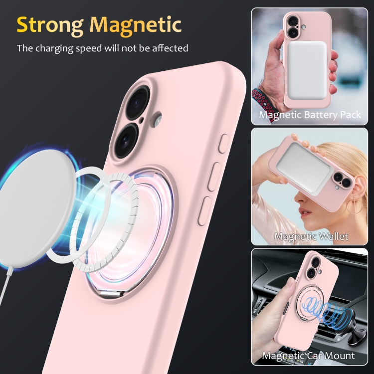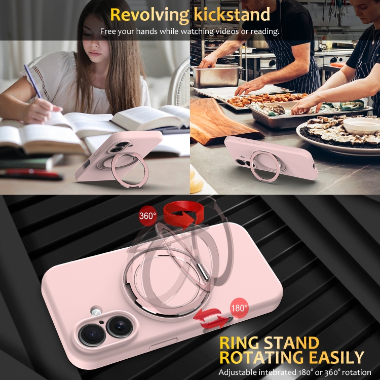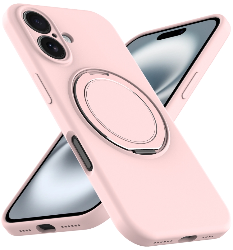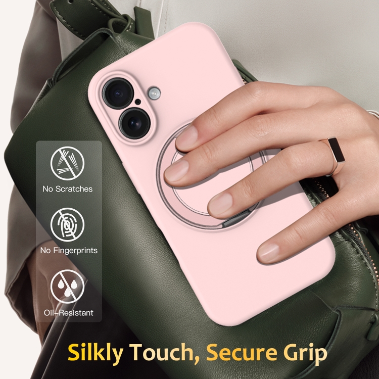 Funda de Silicona Líquida Magsafe para iPhone 16 con Soporte Giratorio (Rosa)