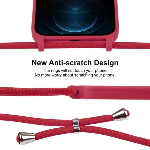 Funda de Silicona Líquida para iPhone 12 Pro Max Crossbody Lanyard (Rosa Roja)